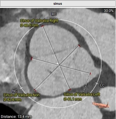 左冠开口较低,结合瓦氏窦大小,预估冠脉风险相对较低