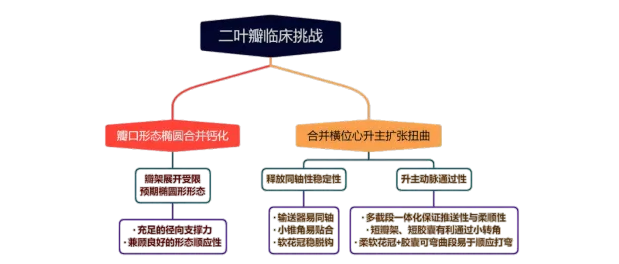(1)Type 0二叶式主动脉瓣,瓣环适中,中度钙化,Type 0二叶瓣受瓣口形态及钙化影响,瓣架呈非理想椭圆形展开,对瓣架支撑力与顺应性提出了更高要求,同时该病例合并升主扩张,对同轴性和释放的稳定性提出了更高的要求。因此优先选择支撑性和顺应性兼具的瓣膜,以及较柔软花冠的瓣膜,降低对升主动脉的损伤,小锥角的设计进一步提升了瓣膜在释放的稳定性