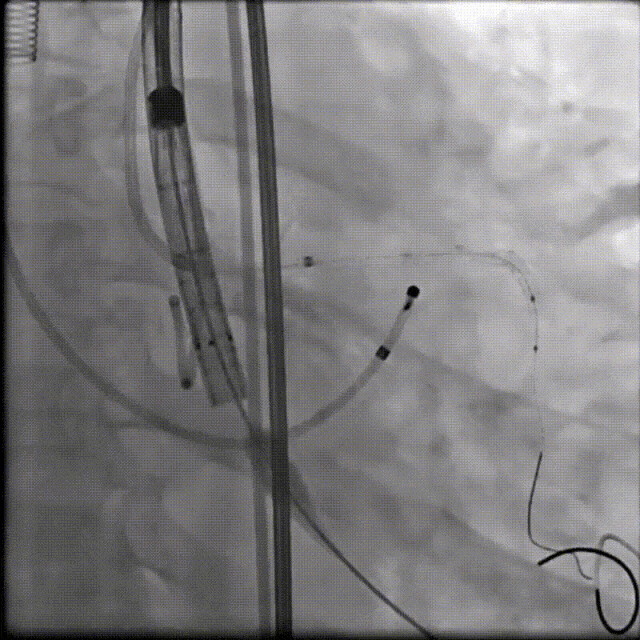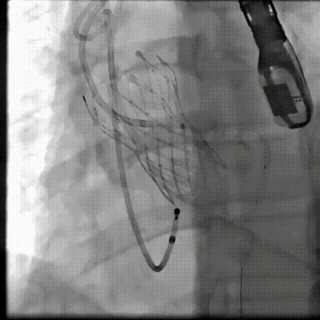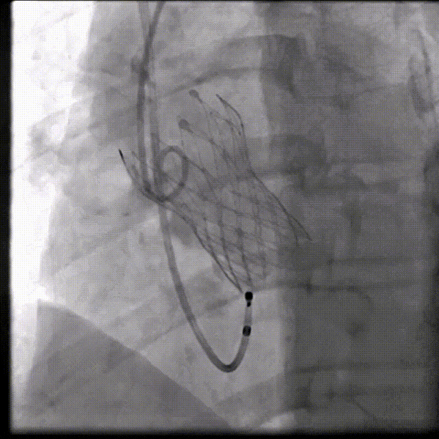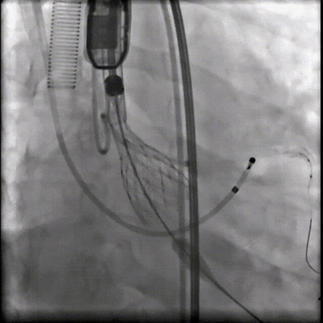 综合病例解剖特点及患者年纪,决定使用第二代可回收的自膨瓣,可回收提高容错空间,为了降低冠脉阻挡风险,决定采用平衡收腰设计的TaurusElite 的瓣膜,先使用大鞘鞘芯进行预扩,然后上20F大鞘。