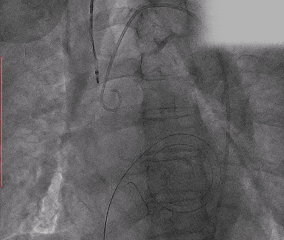 Step 6. 复查造影示瓣膜支架膨胀良好,少量瓣周漏