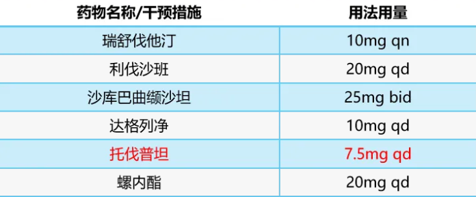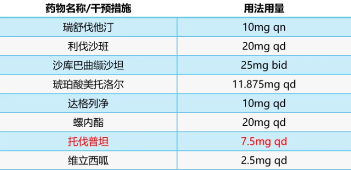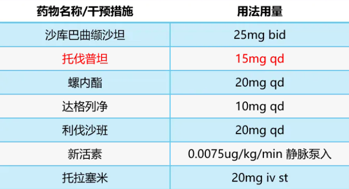 2. 托伐普坦口服贯穿整个急性期、慢性期,根据病情演变剂量及时调整,既要发挥减少心脏前负荷作用,又能避免不耐受,顺从性较佳,疗效可靠,副作用较之其他利尿剂甚少;