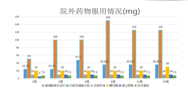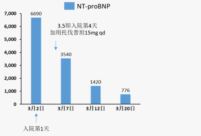 注:患者症状改善,体重逐渐至干重,减少托伐普坦剂量维持同时加用小剂量维立西呱
