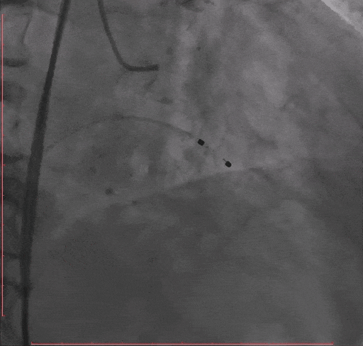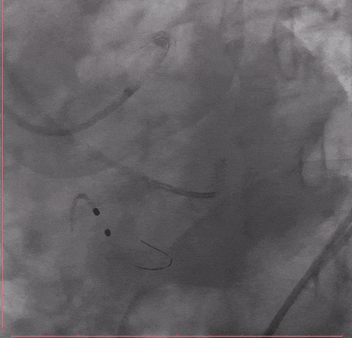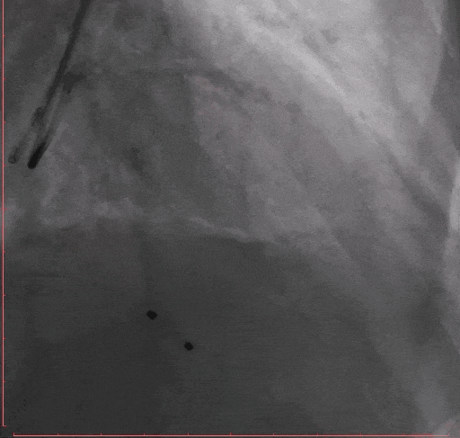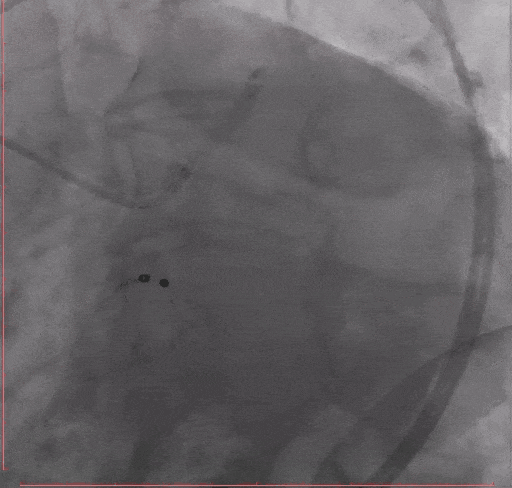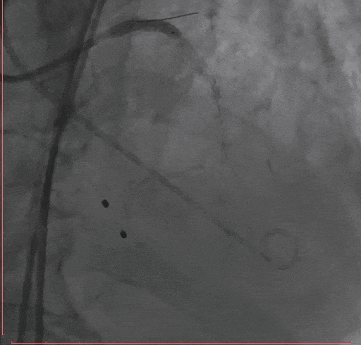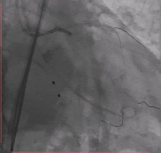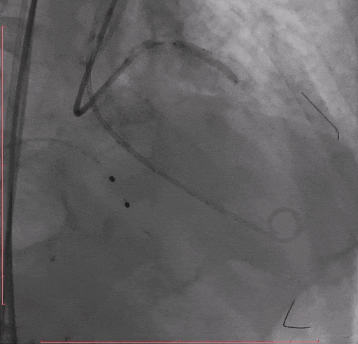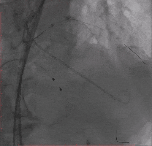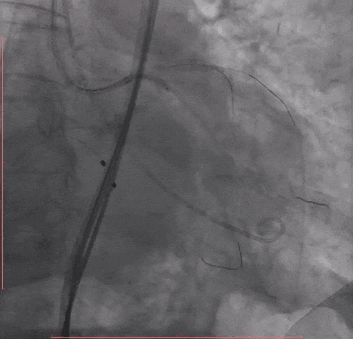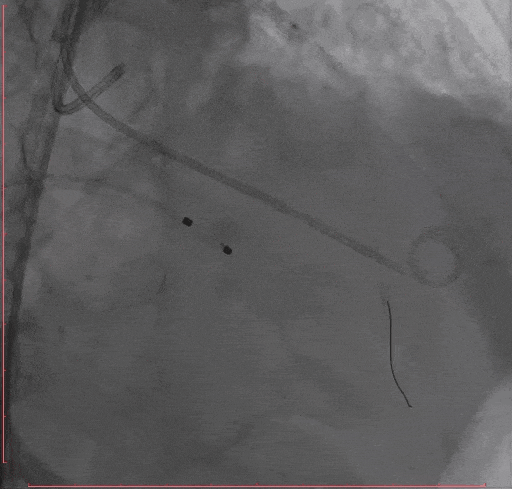 Step 3.导丝跨主动脉瓣后,干预冠脉病变,球囊无法通过LAD病变,予以旋磨