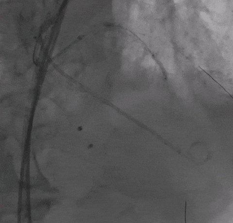 4.患者冠脉三支病变+主动脉瓣重度狭窄,手术过程中对手术团队的配合、术中如何保证血流动力学稳定提出了更高的要求。患者瓣膜释放后的循环不稳定,考虑此人术前已有失代偿经历,心脏储备差,旋磨、LM支架、高速起搏和瓣膜释放对心脏造成的打击引发泵衰竭,心肌处于顿抑状态,立即使用IABP进行辅助,让心脏得到喘息的机会,术后第二日成功拔除IABP,患者恢复好。