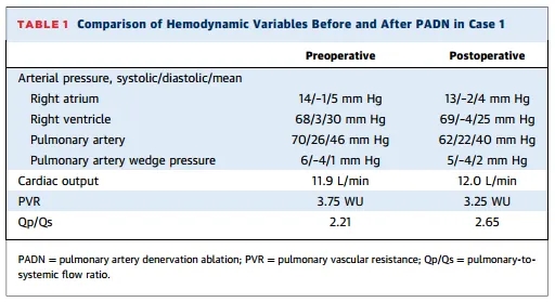 表1:PADN前后血流动力学指标对比