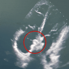 经胸右心声学造影:经右侧肘静脉注入声学造影剂,右心迅速显影,右房内可见造影剂气泡回声负性显影,经屏气及咳嗽后2-4个呼吸周期左房内可见造影剂回声。