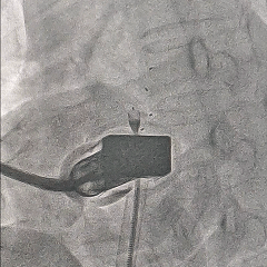 封堵器锁定成型后,牵拉试验可见5个显影点整体随钢缆移动,右盘显影点未发生明显位移