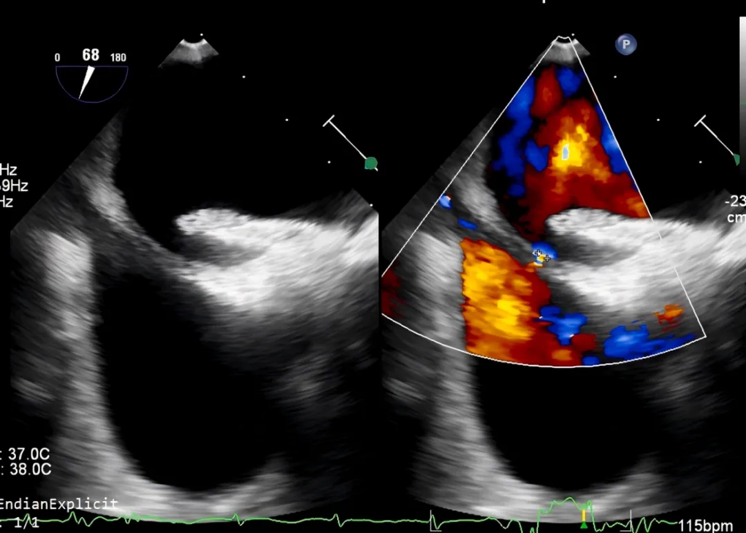 图1 二次干预手术前经食管超声心动图检查