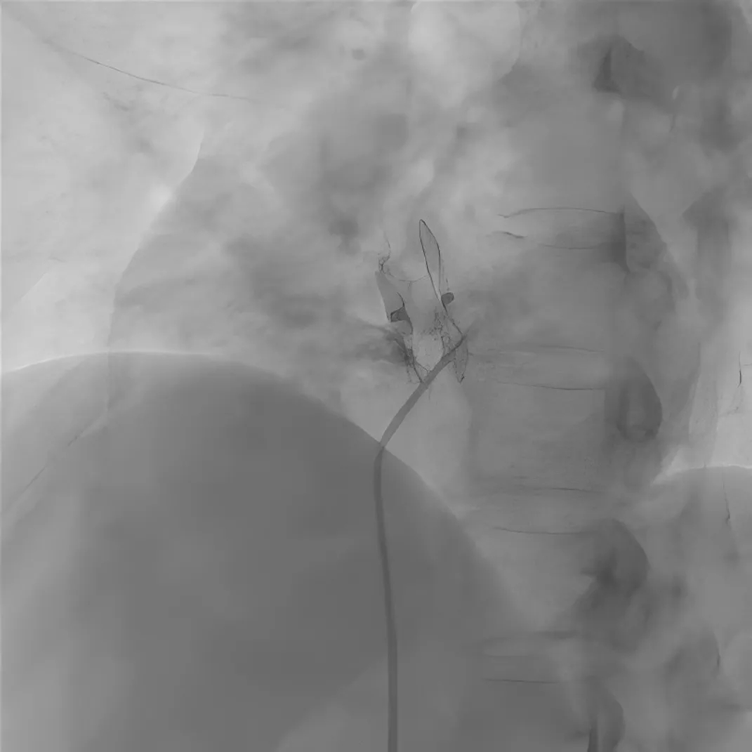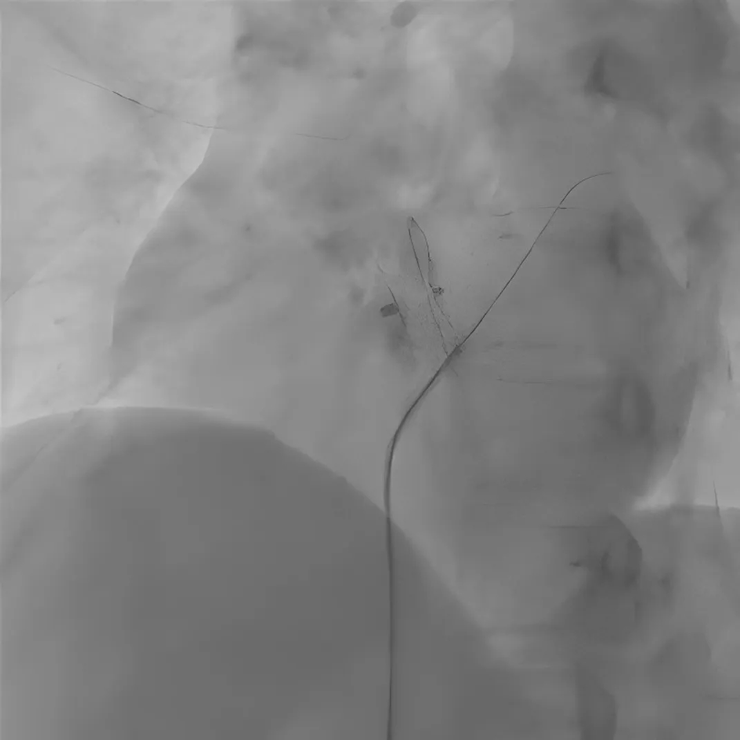 图4 使用可降解封堵器成功封堵残余分流
