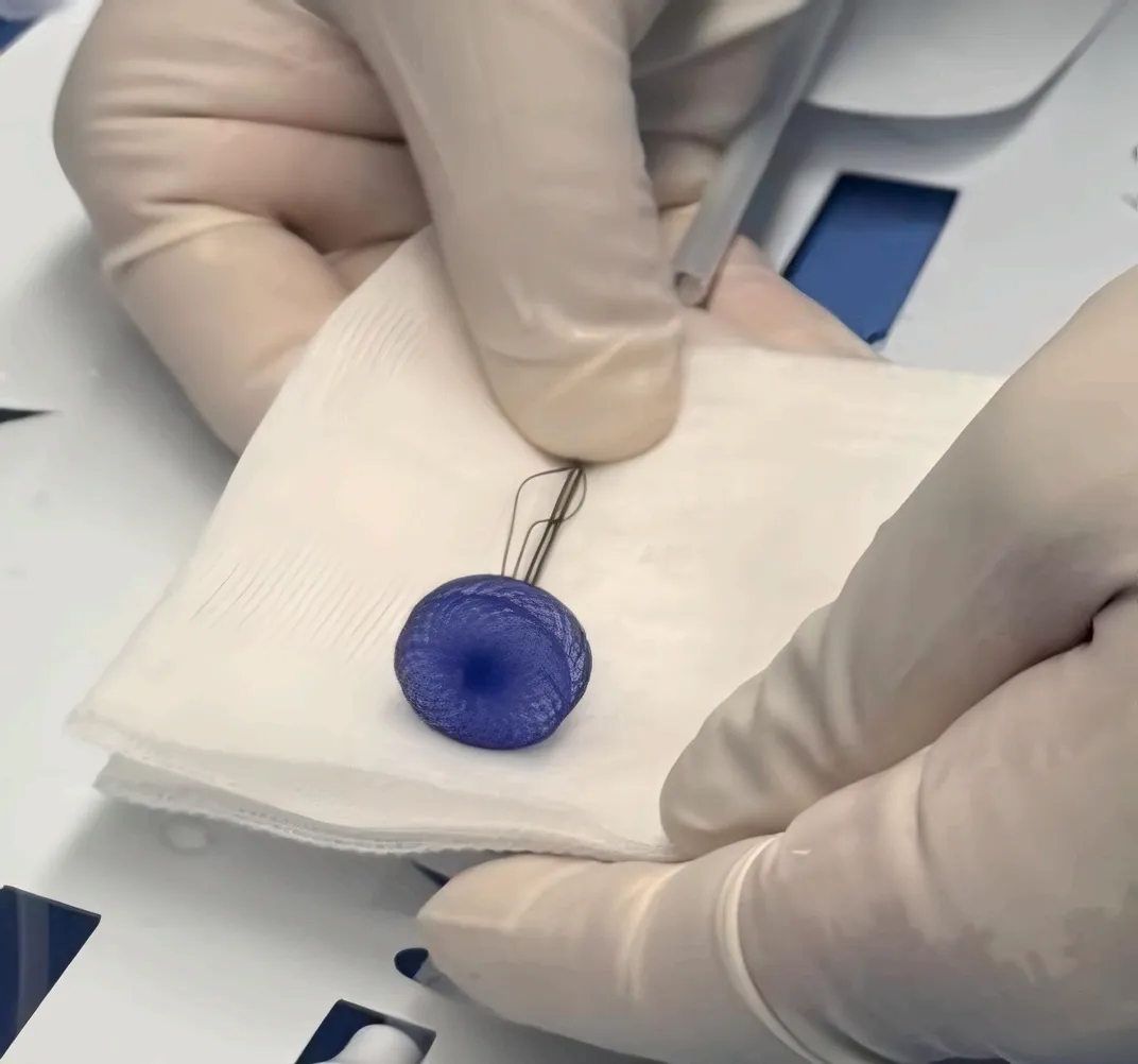 图7 体外装载时可降解卵圆孔未闭封堵器实物照片