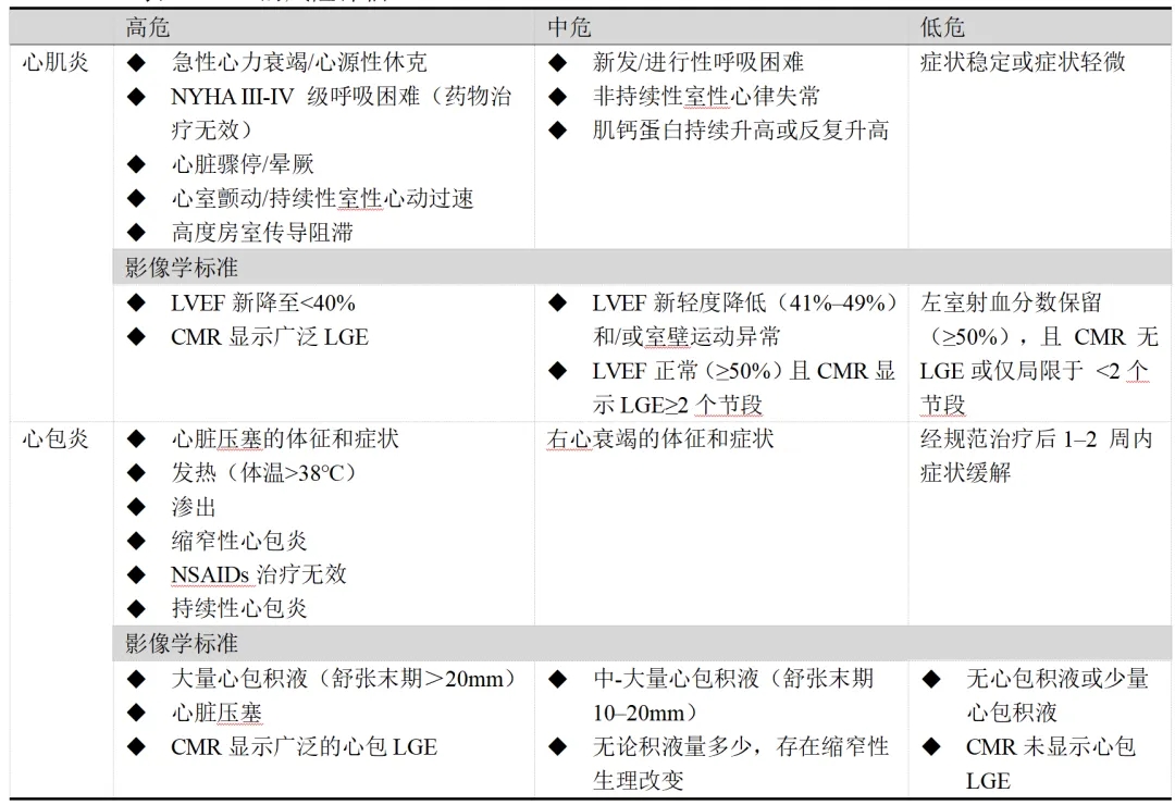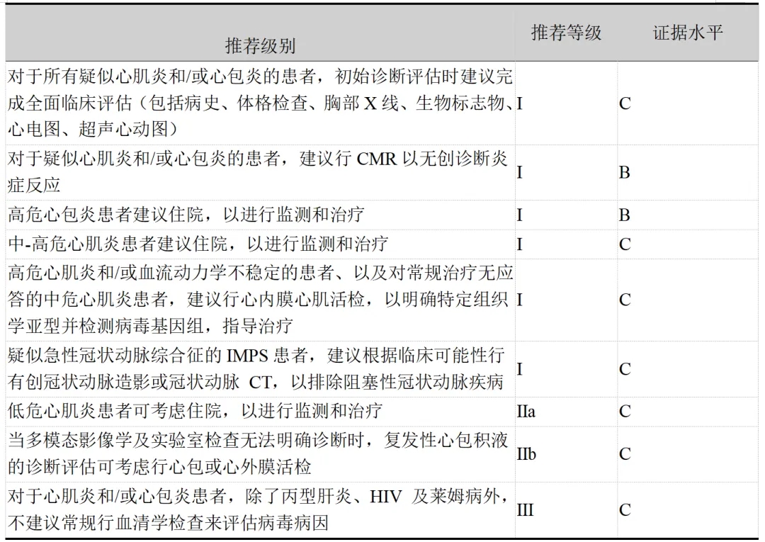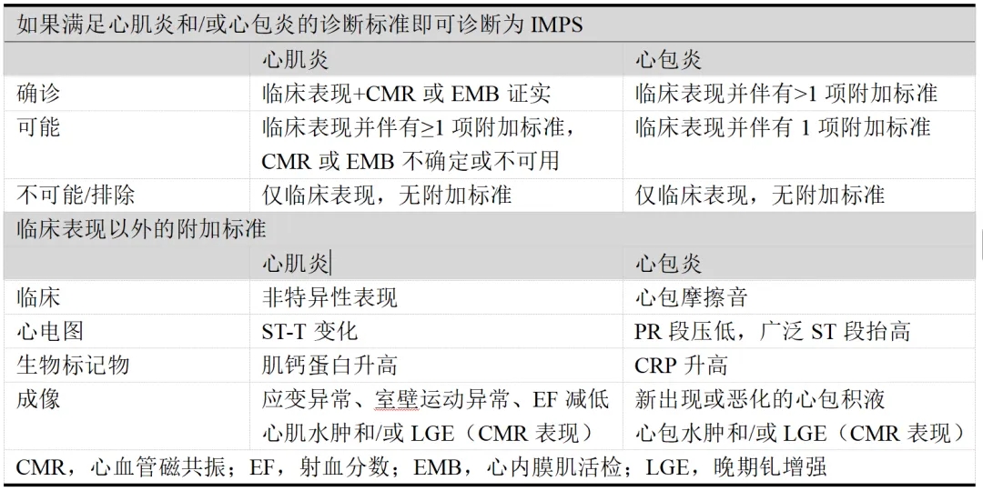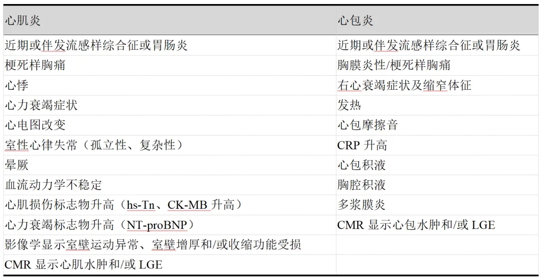 表1.心肌炎和心包炎的诊断标准