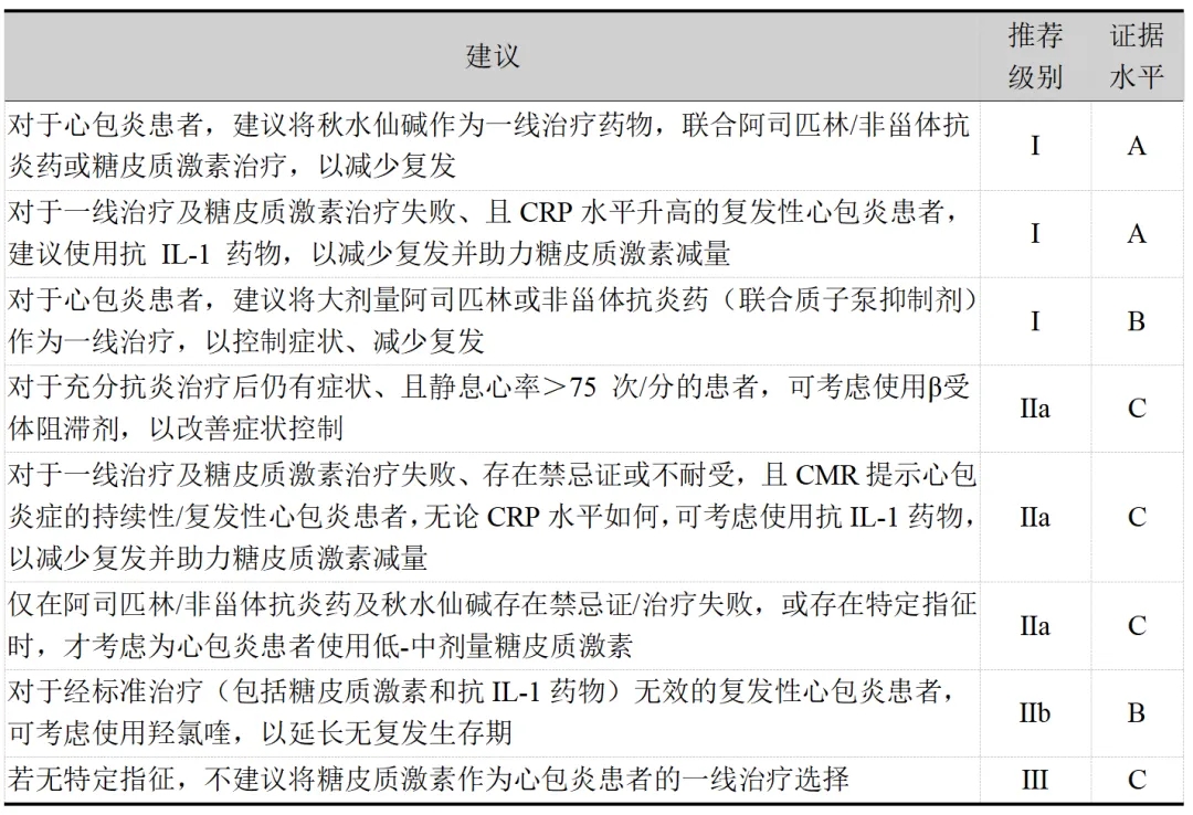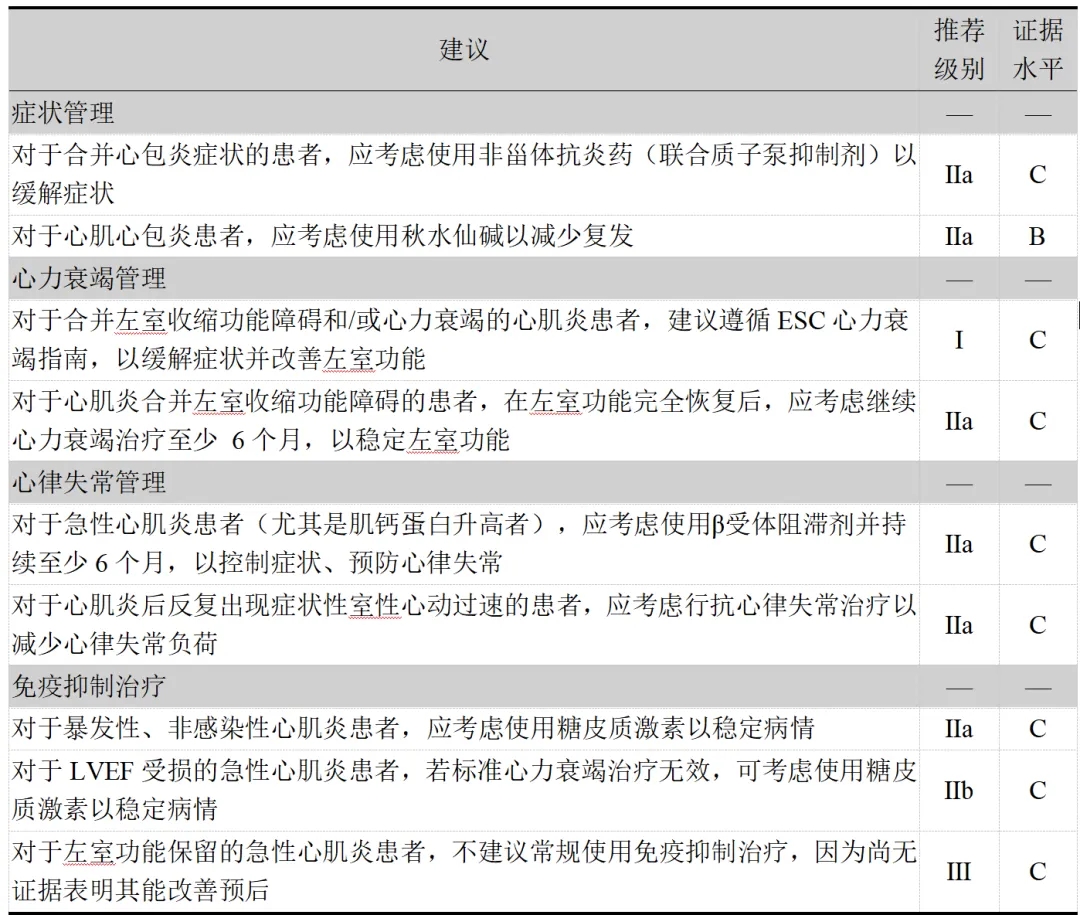参考文献:Schulz-Menger J, Collini V, Gröschel J, Adler Y, Brucato A, Christian V, et al. 2025 ESC Guidelines for the management of myocarditis and pericarditis. Eur Heart J. 2025;46(40):3952-4041.