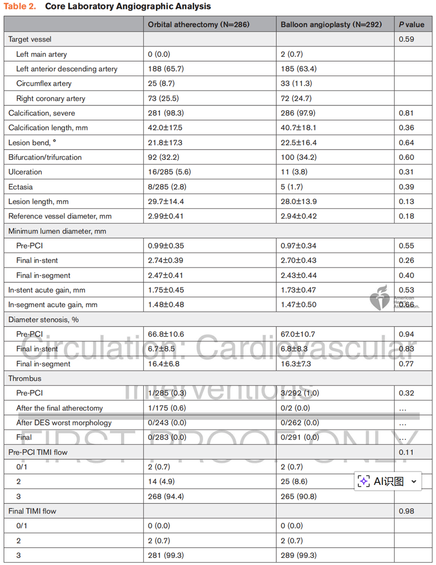 尽管轨道旋磨(OA)对钙化斑块的改良效果优于普通球囊(BA),其术后即刻最小支架面积(MSA)及 1 年靶血管失败(TVF)率却与 BA 无显著差别。