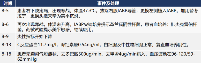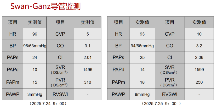中国医学科学院阜外医院心力衰竭与移植团队在完善检查的同时,对该患者进行强心、利尿、保肝等治疗,并于7月18日为其植入IABP,应用无创呼吸机辅助呼吸,8月5日更换为左侧植入IABP,期间进行右心漂浮导管检查示:PAWP 3mmHg(7.24),PAWP 8mmHg(7.25)。本例患者处于晚期心衰阶段,INTERMACS分级3级,IABP植入期间反复出现各种感染、下肢血栓等并发症,病情危重,依据《中国心力衰竭诊断和治疗指南2024》,下一步治疗方案应选择机械循环辅助装置或心脏移植。
