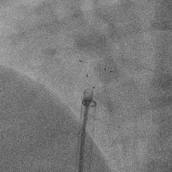 逆时针旋转钢缆释放封堵器,5个Mark点聚拢