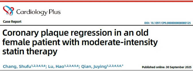 复旦大学附属中山医院钱菊英教授团队在 Cardiology Plus 2025 年第三期上发表的最新病例报告显示:老年女性患者接受中等强度他汀治疗,即便 LDL-C 未达理想目标,仍可能出现冠脉斑块显著消退,这为亚洲人群个体化降脂策略提供了重要临床参考依据。