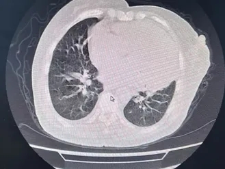 胸部CT:考虑双肺轻度肺间质水肿。肺动脉增粗,心脏增大,冠脉钙化,少量心包积液,双侧胸膜腔积液,提示心衰征象。肺气肿;双肺慢性细支气管炎。右肺中叶、左肺上叶条状肺不张伴炎症。胸壁皮下轻度水肿。