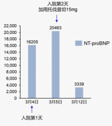 加用托伐普坦后,患者NT-proBNP明显下降。