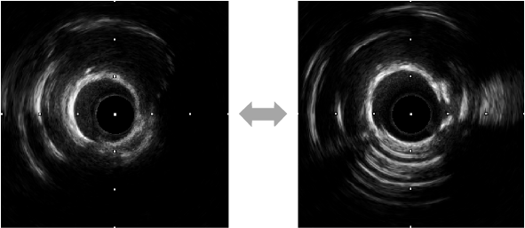 用2.5mm高压球囊对远端病变进行充分扩张后,行IVUS可见明显钙化环断裂。
