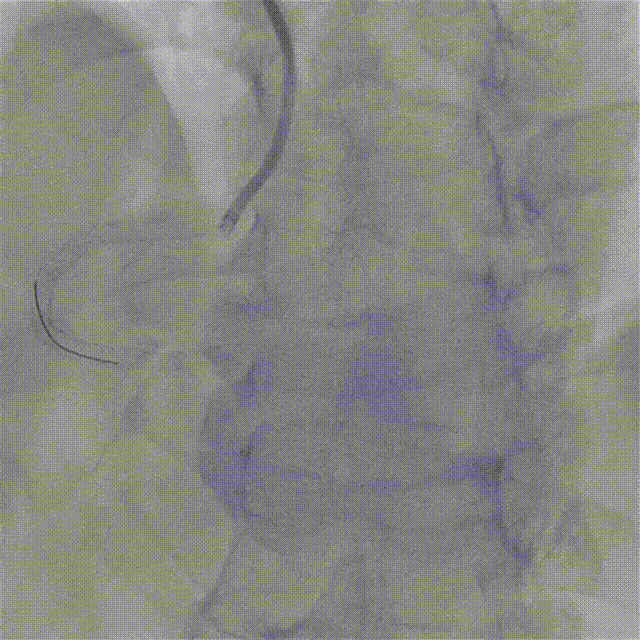 再次送入1.5mm旋磨头对远端病变进行旋磨,顺利通过病变处并进行充分打磨。