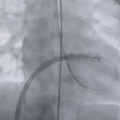 封堵器未锁定时造影,确认封堵器位置形态正确