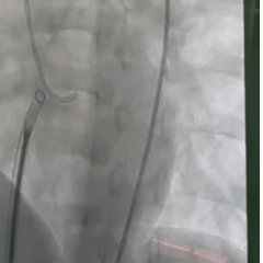 在肺动脉内圈套导丝,建立动静脉轨道
