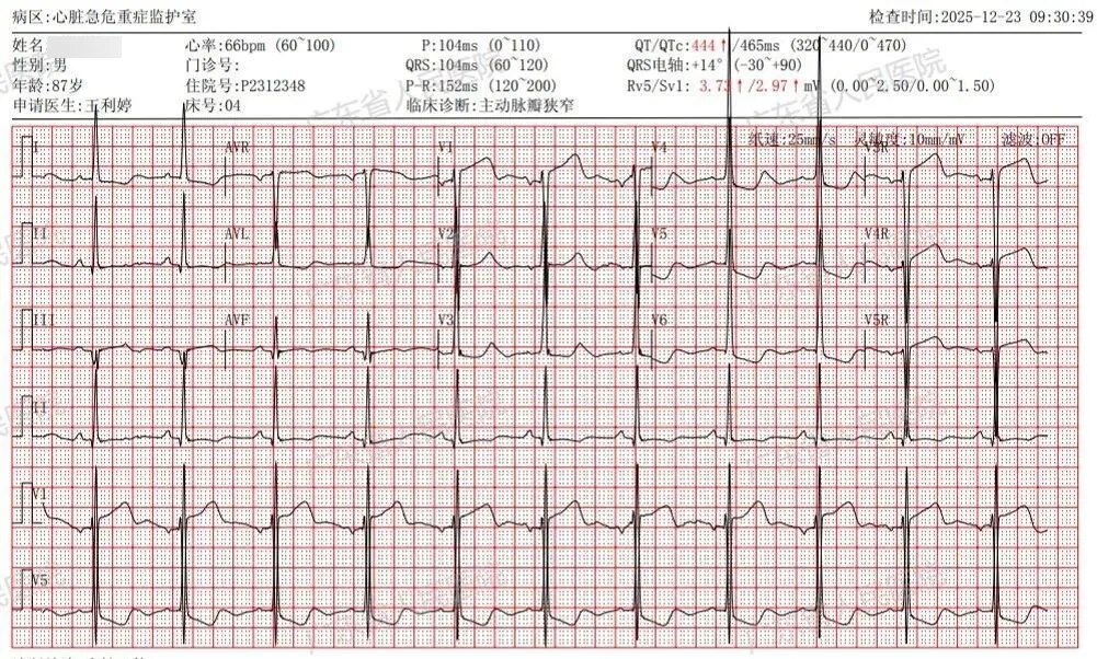 现病史:患者入院前6天出现胸闷痛并加重,急性心衰休克来院,并行紧急气管插管,呼吸机辅助呼吸。急诊超声心动图提示:主动脉瓣极重度狭窄并轻-中度反流。