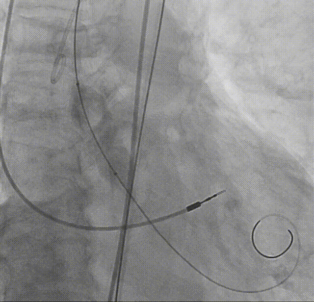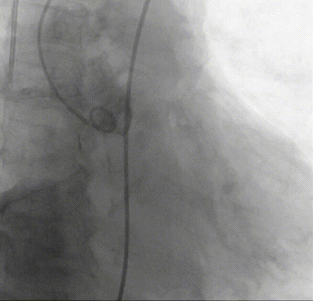 18mm球囊预扩:可见无腰有漏,经评估决定装载TAVTF25瓣膜