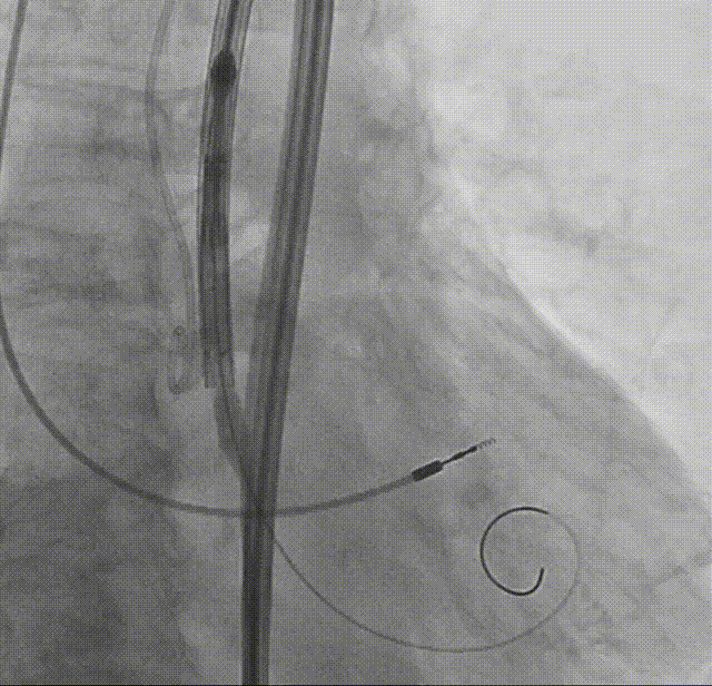 在该病例中,术前采用床旁下肢血管超声检查评估两侧股动脉内径、血管钙化等情况,以初步制定TAVR入路选择方案。同时可完善颈动脉超声评估作为备选方案。完成穿刺后,通过术中血管造影进一步明确双侧髂股动脉入路情况,可选择条件更好的一侧进行手术。此外,我们可以选用短支架瓣膜,对于未知的挑战性外周入路条件尤其是在系统过弓、跨瓣时更顺滑更安全。