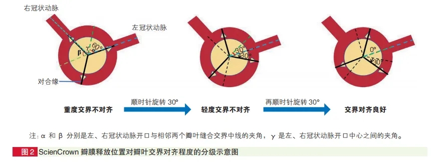 对齐标准:人工瓣膜对合缘与冠状动脉交界角度0°~15°为对齐良好,>15°为不同程度不对齐。