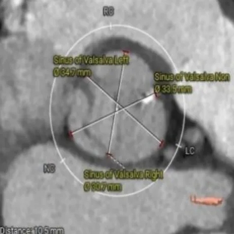 1、患者为54岁中年男性,主动脉瓣狭窄(重度)合并关闭不全(轻度)诊断明确,患者近2年来心功能及左室射血分数下降明显,心功能较差,对于此类患者行外科换瓣手术风险高,TAVR可作为首选治疗方案,可显著改善此类患者的预后,但术前需充分评估患者各系统可能发生的并发症及风险,并结合麻醉科、心脏外科、体外循环、超声科等开展MDT讨论,充分制定手术方案及预案。