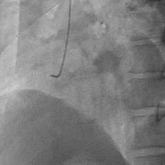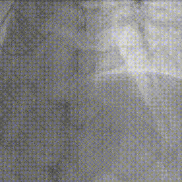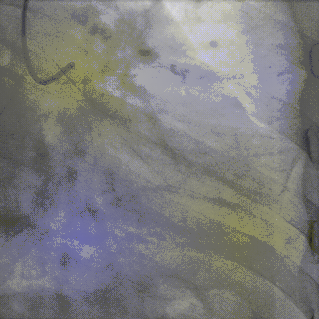 PCI术前将压力导丝送至LAD远段,泵腺苷630ml/h,浓度1mg/ml,测得IMR:24,CFR:2.5,FFR:0.76(+)。患者LAD FFR 0.76,提示管腔狭窄导致心肌缺血,需进行血运重建。IMR值显示患者微循环功能正常。