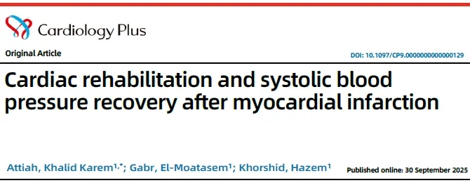 引用本文:Attiah, Khalid Karem1,*; Gabr, El-Moatasem1; Khorshid, Hazem1. Cardiac rehabilitation and systolic blood pressure recovery after myocardial infarction. Cardiology Plus 10(3):p 199-204, July-September 2025.