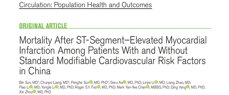 Circulation子刊|胸痛中心研究发现:近1/4的STEMI患者无三高或吸烟,发病后30天内死亡风险较SMuRF患者高出22%