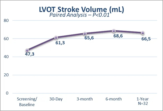 截止2025年末,欧洲/澳洲EFS已开始CE递交审批,中国注册研究持续招募患者及患者随访中,美国EFS启动招募中,HighFlo研究患者招募中。欧洲/澳洲EFS是一项多中心、单臂、非随机对照研究,共35名患者接受完整3年随访,技术成功率88.6%,无手术相关死亡、心肌梗死、中风发生;80例患者1年呈现良好的左室逆重构和临床改善;3年全因死亡率42.9%,瓣膜压差5.7mmHg,未发生LVOT阻挡,无瓣膜血栓发生,瓣周漏发生率低,仅2例瓣周漏(PVL>1+)且无需瓣周漏封堵,无溶血发生。