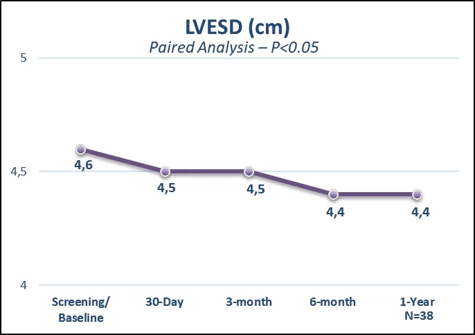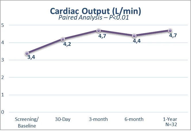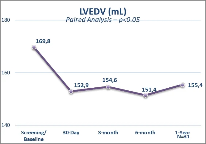 SQ-Kyrin-M治疗FMR 1年随访结果:1年时16%患者发生死亡或心力衰竭住院,94.2%患者MR≤2+,84.4%患者NYHA≤Ⅱ级。