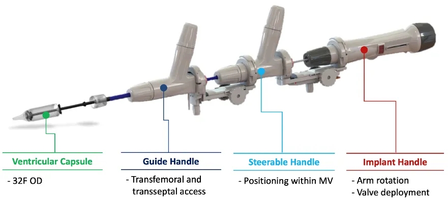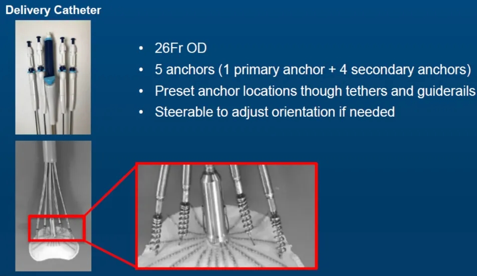 Polares MRace系统是后瓣叶置换系统,通过5个预安装和导向锚固定,通过5个预安装和导向锚固定适用于不适宜行TEER和TMVR的复杂二尖瓣解剖患者。2025 EuroPCR报道了EXPLORE MR研究1年随访结果,前期结果显示即刻手术成功率91.1%,1年全因死亡率28.9%,91%患者MR≤1+,NYHA分级较前改善。