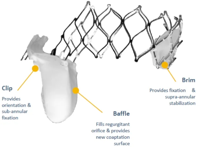 Half Moon系统后瓣叶扩张装置能填充二尖瓣反流口,为前瓣叶提供新的对合面积,为不适宜行TEER和TMVR的复杂二尖瓣解剖患者提供新的治疗方式。前期探索性研究结果显示,其能够有效减少AFMR、短小挛缩的后瓣叶、反流裂隙和小瓣环患者的反流面积且不增加压差。目前国际多中心、单臂临床试验正在进行中。