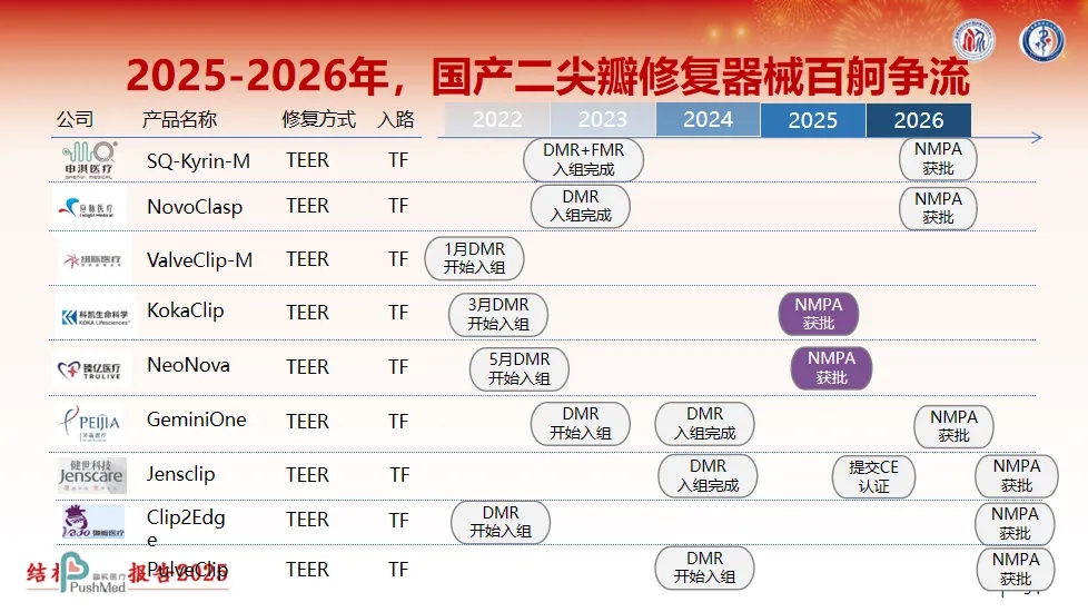 2026年国产二尖瓣修复器械将接续百舸争流,SQ-Kyrin-M、NovoClasp、GeminiOne、Jensclip、Clip2Edge等系统将陆续获得NMPA批准。