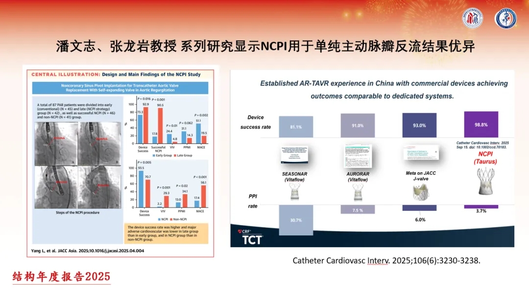 潘文志、张龙岩教授团队的研究则证实,对于单纯主动脉瓣反流,采用非冠状动脉窦轴心植入策略能显著提升TaurusElite瓣膜的器械成功率至98.8%,并减少永久起搏器植入需求。