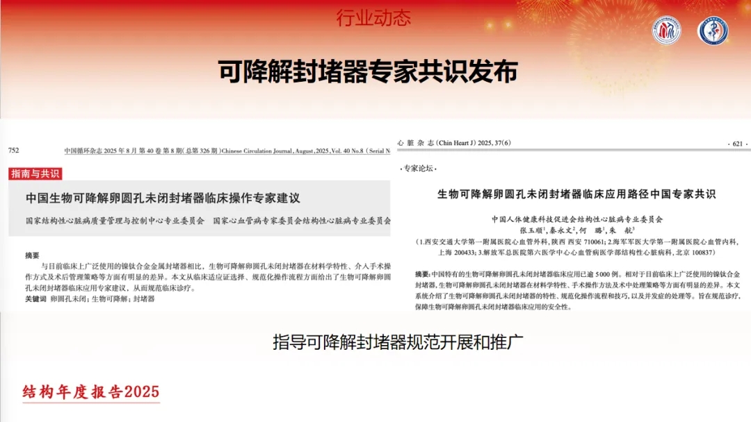 与此同时,2025年两部可降解封堵器专家建议/共识的发布,为可降解封堵器的临床规范操作、安全应用提供了明确指引,有力推动该类创新技术的规范化推广与普及。