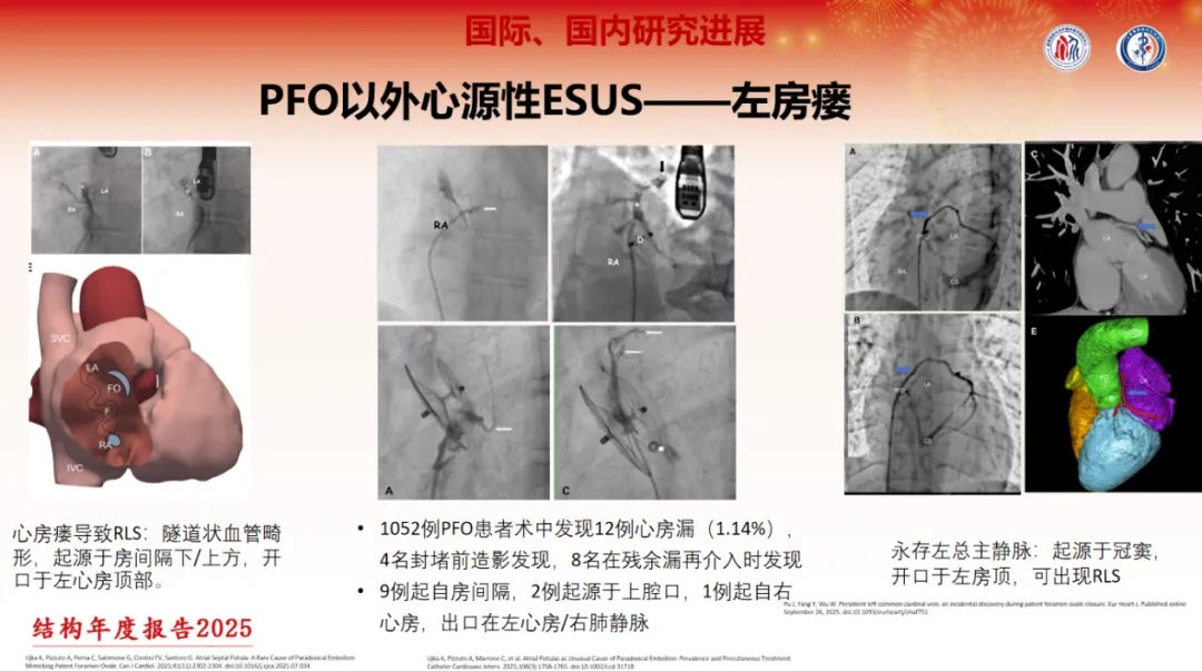 在PFO以外心源性ESUS方面,张长东教授重点介绍了左房瘘和房间隔囊袋的最新进展。