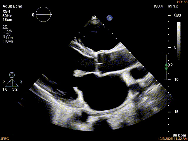 病变情况:P2-部分P3,脱垂宽度约27mm ,连枷间距11-13mm,瓣口面积7.8cm²,PML约25mm