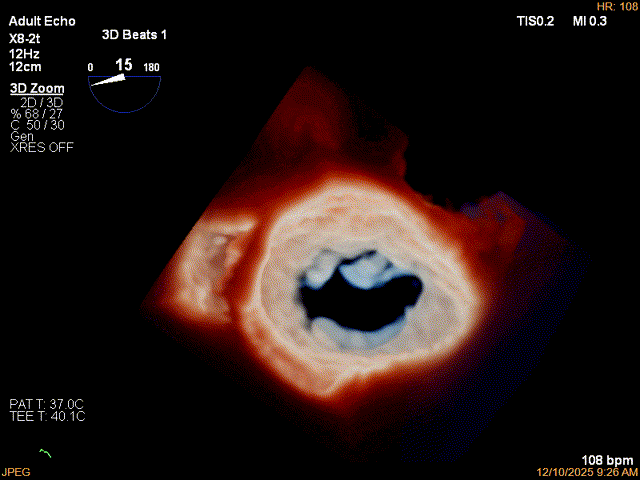 为了避免长时间TEE对食道造成损伤,术前即刻3D-TEE短时进一步明确二尖瓣病变相关解剖情况。