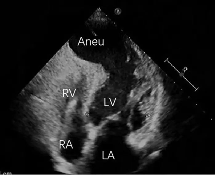 图注:Aneu=室壁瘤;LA=左心房;LV=左心室;RA=右心房;RV=右心室;TTE=经胸超声心动图