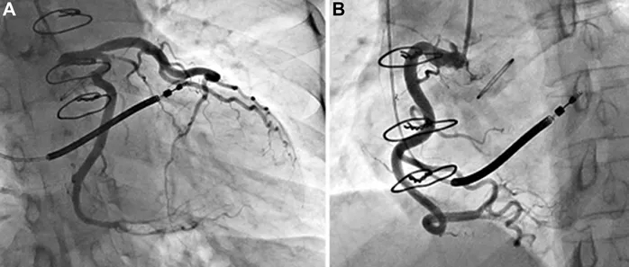 针对心尖部室壁瘤的典型症状,鉴别诊断需重点排除以下常见病因:1)肥厚型梗阻性心肌病:经胸超声心动图显示巨大解剖性心尖前壁室壁瘤,约占左心室容积60%,伴收缩期反常运动,根据该表现排除肥厚型梗阻性心肌病诊断(图1、2);2)冠状动脉疾病:冠脉造影提示未见明显狭窄、心肌桥或血流异常,据此排除冠状动脉相关疾病(图2)。
