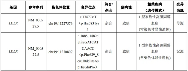 依据指南推荐,成人家族性高胆固醇血症的诊断需符合下列3项条件中的至少2项:(1)未经治疗的血清LDL-C≥4.7mmol/L;(2)皮肤/腱黄色瘤或脂性角膜弓(<45岁);(3)一级亲属中有家族性高胆固醇血症或早发动脉粥样硬化性心血管疾病患者。结合该患者病史及基因检测结果,其家族性高胆固醇血症诊断明确。