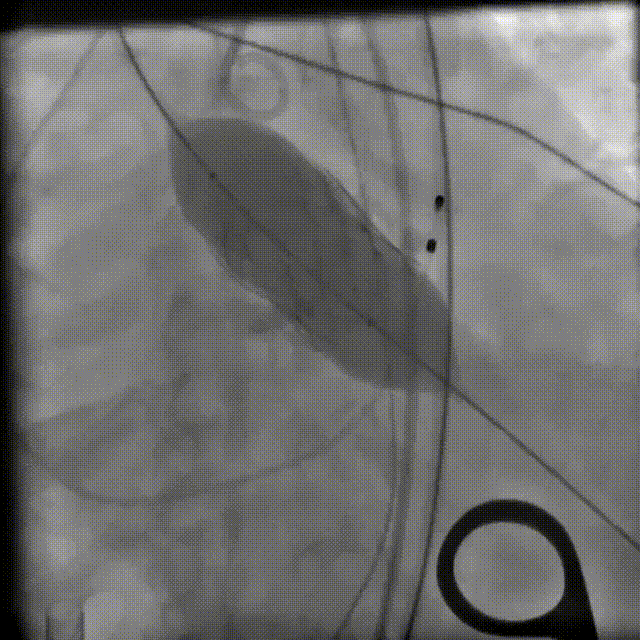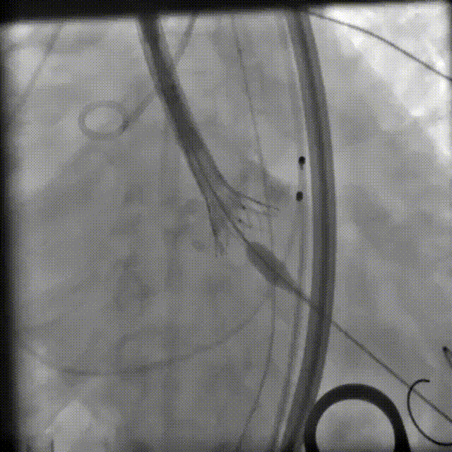 Snare辅助植入TF25号瓣膜,瓣膜可见压缩