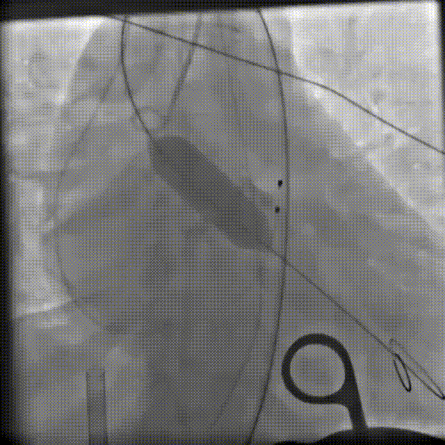 基于患者病情危重、一般状况与心功能进行性恶化,且无法耐受传统外科手术,团队决定施行急诊经导管主动脉瓣置换术(TAVR)。鉴于情况紧急,无法完成常规的术前CT精细评估,术者团队果断决策,采用快速CT测量结合术中超声心动图及主动脉根部造影等多模态影像技术,进行综合研判,并据此制定了周密的球囊扩张与瓣膜植入策略。