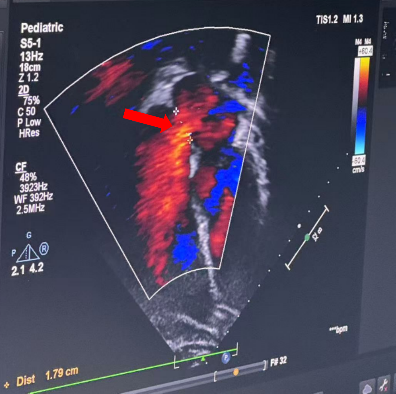 术后即刻超声检查显示封堵器位置正确、形态良好、夹持稳定,无残余分流。术后第1天和第2天的随访超声进一步显示房间隔可见封堵器回声,位置固定,形态良好,且房水平未见残余分流信号。